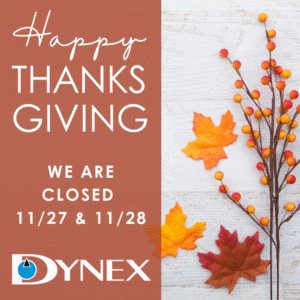 Dynex Pewaukee, WI and Ashland, MA facilities will be closed on Friday, April 18th for Good Friday. Normal business hours will resume on Monday, April 21st.